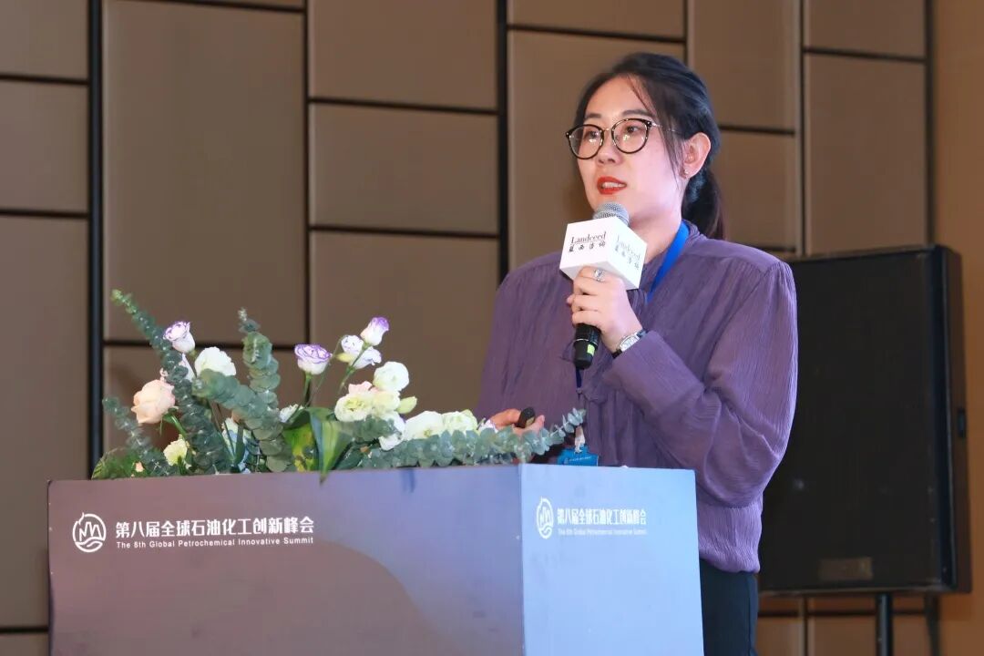 第二位致辞嘉宾是中国循环经济协会互联网+资源循环利用专委会侯允秘书长,她强调循环经济对国家“双碳”目标的实施有重要的支撑作用,其次强调了循环经济对于石油化工转型升级的促进作用,并希望各方合力,共同促进石油化工行业的循环可持续发展。