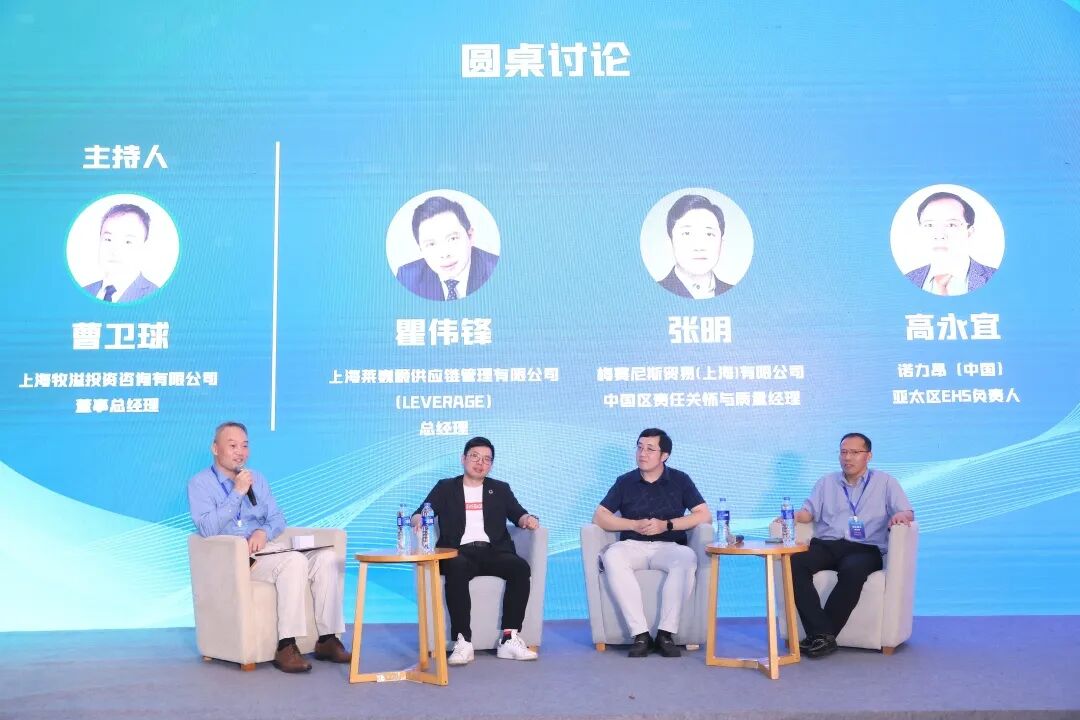 圆桌访谈由上海牧溢投资咨询有限公司董事总经理曹卫球先生担任主持人,邀请了上海莱巍爵供应链管理有限公司(LEVERAGE)总经理瞿伟锋、梅赛尼斯贸易(上海)有限公司中国区责任关怀与质量经理张明、诺力昂(中国)亚太区EHS负责人高永宜,共同探讨在双碳新赛道上,化学品价值链上利益攸关各方如何牵手同行,进一步开展碳减排碳中和工作,协同实现产业可持续发展。