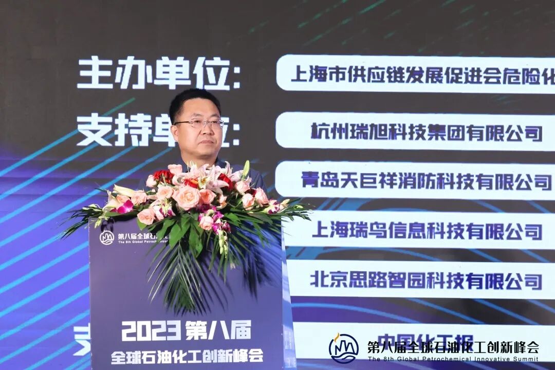 镇海石化物流有限责任公司副总经理方向京先生分享了《加强应急救援队伍建设,筑牢危化品物流公共安全防线》,他表示在危化品物流领域,不断提升公共安全防线至关重要,并强调加强应急救援队伍建设和科学处置危化品的重要性。