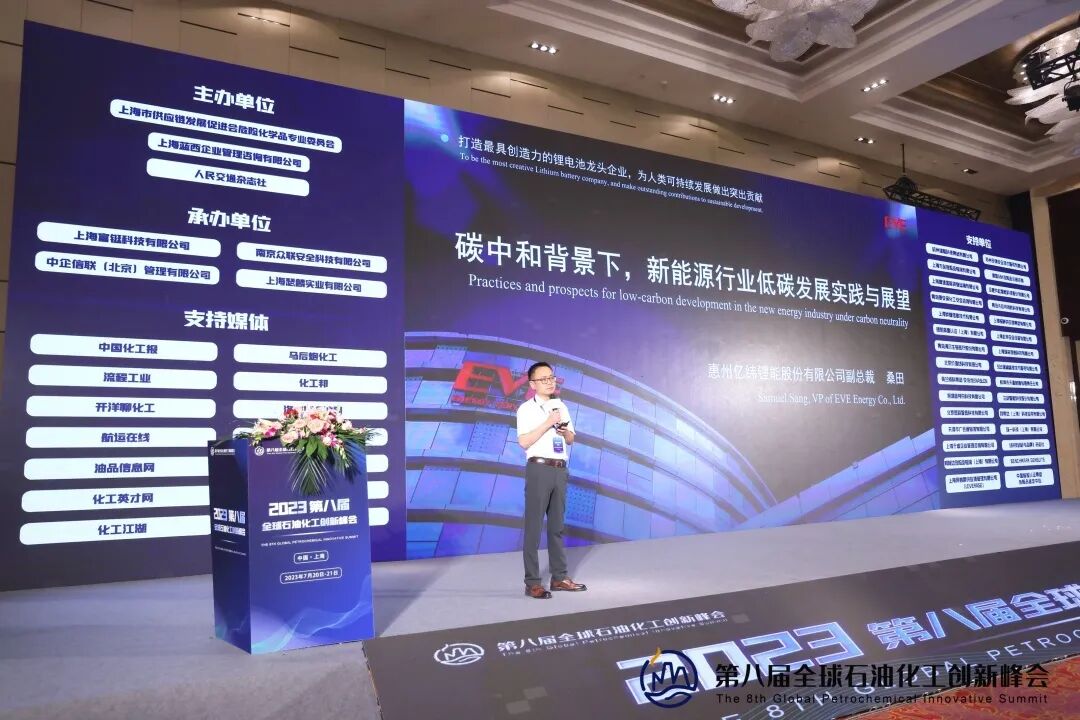 惠州亿纬理能股份有限公司副总裁桑田先生,带来了《碳中和背景下,新能源行业低碳发展实践与展望》,指出当前全球都在推动“双碳”工作,亿纬锂能的能源互联网解决方案能够有效帮助石油化工行业转型减碳,共同推动可持续发展。