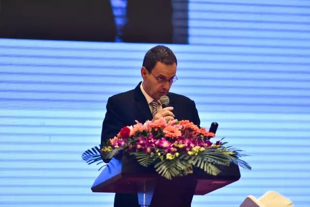 康迈(南京)机械有限公司的全球销售副总裁 Mike Harman先生进行主题演讲,他的演讲题目是细节决定成败 安全承载未来。