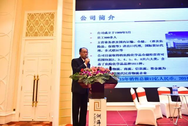中外运化工国际物流有限公司的副总经理高原先生进行演讲,他的演讲题目是危化品道运输的安全防范措施与应急处理。